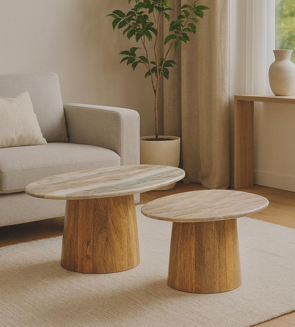סט שולחנות הסלון “מנגו לונה” משלב בין טבעיות לאלגנטיות מודרנית, עם עיצוב עגול הרמוני וקווים נקיים.